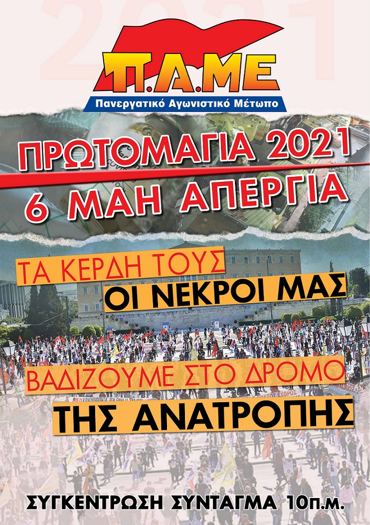 Αφίσες για την Πρωτομαγιά και απεργία 6 ΜΑΗ Δημοσιεύτηκε στις 21 Απριλίου 2021 FacebookTwitterWhatsAppEmailΤυπώνωViberCopy URL Κάνε κλικ στο παρακάτω για να δείτε και να κατεβάσετε όλες τις αφίσες για την Πρωτομαγιά και απεργία 6 ΜΑΗ https://flic.kr/s/aHsmVqPWVe Κάντε κλικ για να δείτε όλες τις αφίσες Περισσότερα Π.Α.ΜΕ Ψήφισμα Συνδικαλιστικών Οργανώσεων Στήριξης των Αγροτικών Κινητοποιήσεων Να ικανοποιηθούν τώρα τα δίκαια αιτήματα των αγροτών! Ο αγώνας τους είναι και δικός μας... 8 Ιανουαρίου 2026 Π.Α.ΜΕ (ΑΦΙΣΑ)Τα κέρδη των ιμπεριαλιστών βουτηγμένα στο αίμα των λαών 5 Ιανουαρίου 2026 Διεθνών Σχέσεων Κάτω τα χέρια από τον λαό της Βενεζουέλας Η στρατιωτική επίθεση των ΗΠΑ στη Βενεζουέλα αποτελεί ακόμη ένα έγκλημα του ιμπεριαλισμού σε... 3 Ιανουαρίου 2026