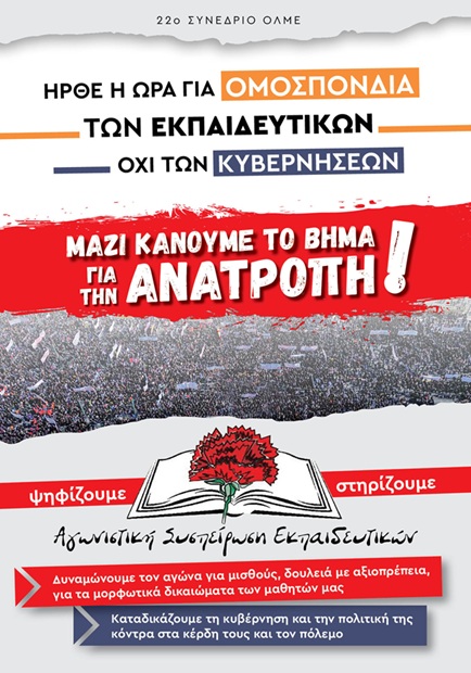 Αγωνιστική Συσπείρωση Εκπαιδευτικών: Κάλεσμα για το 22ο Συνέδριο της ΟΛΜΕ