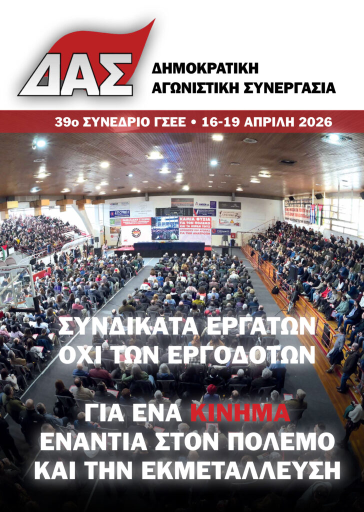 ΔΑΣ – 39ο Συνέδριο ΓΣΕΕ – Συνδικάτα εργατών όχι των εργοδοτών – Για ένα κίνημα ενάντια ενάντια στον πόλεμο και την εκμετάλλευση