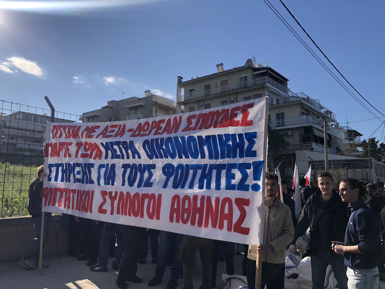 Το Σάββατο 4/4 πραγματοποιήθηκε κινητοποίηση των Φοιτητικών Συλλόγων της Αθήνας στη Σύνοδο των Πρυτάνεων στη Βουλιαγμένη. Οι Φοιτητικοί Σύλλογοι, έχοντας στείλει επιστολή στο Υπουργείο Οικονομικών και στο Υπουργείο Παιδείας με αναλυτικά αιτήματα ειδικά για μέτρα οικονομικής στήριξης των φοιτητών και των Πανεπιστημίων μας, απαιτήσαμε να μπει αντιπροσωπεία στη Σύνοδο για να ακουστεί η φωνή των φοιτητών και να πάρουμε συγκεκριμένες απαντήσεις.