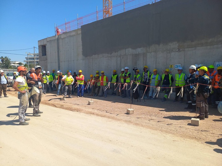Εκδήλωση για την Εργατική Πρωτομαγιά πραγματοποιήθηκε σήμερα στο εργοτάξιο του Ελληνικού από το Συνδικάτο Οικοδόμων Αθήνας, στο πλαίσιο δίωρης στάσης εργασίας που κήρυξε το επιχειρησιακό σωματείο.