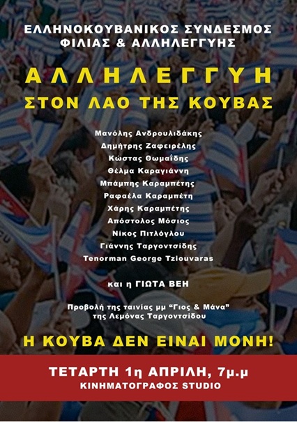 Ελληνοκουβανικός Σύνδεσμος Φιλίας – Αλληλεγγύης: 1η Απρίλη εκδήλωση αλληλεγγύης με την Κούβα