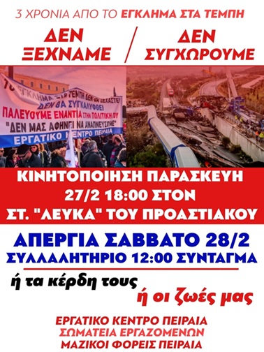 Εργατικό Κέντρο Πειραιά: 27 Φλεβάρη κινητοποίηση Στ. Λευκά Προαστιακού Δημοσιεύτηκε στις 26 Φεβρουαρίου 2026 FacebookTwitterWhatsAppEmailΤυπώνωViberCopy URL Περισσότερα Αφίσες Εργατικό Κέντρο Πειραιά: Αφίσα για κινητοποίηση 27 και 28 Φλεβάρη 26 Φεβρουαρίου 2026 Αφίσες Εργατικό Κέντρο Θήβας: Αφίσα για Συλλαλητήριο 28 Φλεβάρη 24 Φεβρουαρίου 2026 Αφίσες Συνδικάτο Επισιτισμού Τουρισμού Ξενοδοχοϋπαλλήλων Αττικής: 25 Φλεβάρη Όλοι στην 24ωρη Απεργία 24 Φεβρουαρίου 2026
