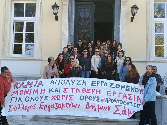 Το Εργατικό Κέντρο Σάμου χαιρετίζει τη σημερινή κινητοποίηση των εργαζομένων στους ΟΤΑ, κυρίως εργαζομένων σε παιδικούς – βρεφικούς σταθμούς και ΚΔΑΠ, ΚΔΑΠ – Μ.Ε.Α. και λοιπές δομές, έξω από το Δημαρχείο του Δήμου Ανατολικής Σάμου που έγινε στα πλαίσια της πανελλαδικής απεργίας και καλούσε ο Σύλλογος Εργαζομένων των Δήμων Σάμου και το ΝΤ Σάμου της ΑΔΕΔΥ. Το αίτημά τους η μετατροπή των συμβάσεων ορισμένου χρόνου σε αορίστου, η μόνιμη και σταθερή δουλειά, κόντρα στον άθλιο σχεδιασμό της κυβέρνησης για γενίκευση της ομηρίας των συμβασιούχων σε παιδικούς σταθμούς και ΚΔΑΠ.