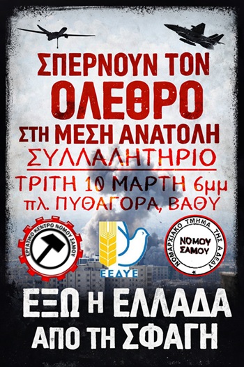 Εργατικό Κέντρο Σάμου – ΝΤ ΑΔΕΔΥ – Πανσαμιακή Επιτροπή Ειρήνης: Όλοι στη συγκέντρωση 10 Μάρτη Δημοσιεύτηκε στις 9 Μαρτίου 2026 FacebookXWhatsAppEmailΤυπώνωViberCopy URL Περισσότερα Αφίσες Εργατικό Κέντρο Πειραιά: Έξω τα καζάνια του Θανάτου από τη Δραπετσώνα και το Πέραμα 5 Μαρτίου 2026 Αφίσες Εργατικό Κέντρο Πειραιά: Αφίσα για την προβολή ταινίας “Το Τελευταίο Σημείωμα” στις 7 Μάρτη 2 Μαρτίου 2026 Αφίσες Εργατικό Κέντρο Πειραιά: 27 Φλεβάρη κινητοποίηση Στ. Λευκά Προαστιακού 26 Φεβρουαρίου 2026