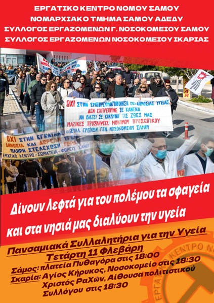 Εργατικό Κέντρο – Σύλλογοι Σάμου: Πανσαμιακά Συλλαλητήρια για την Υγεία Τετάρτη 11 Φλεβάρη
