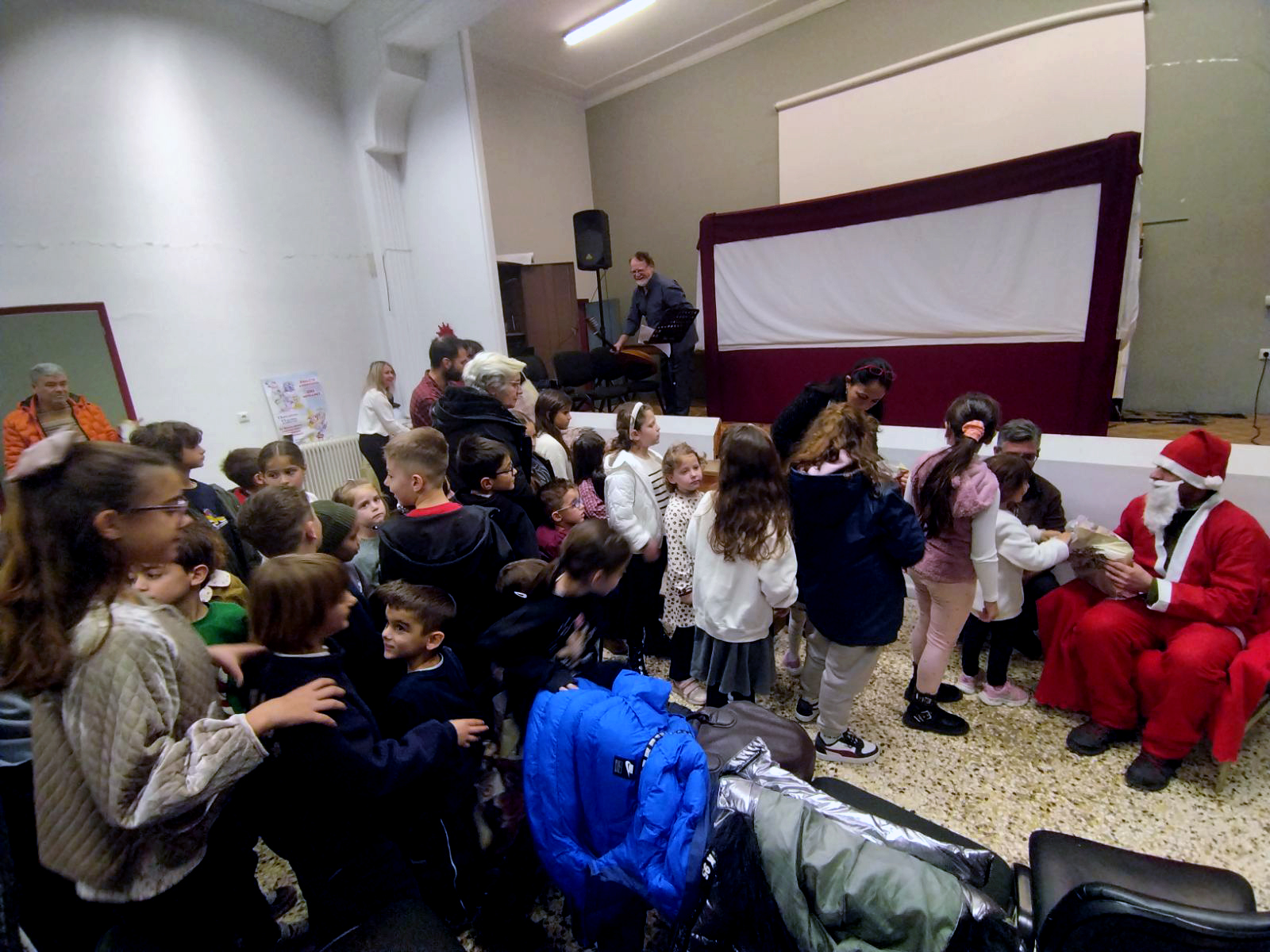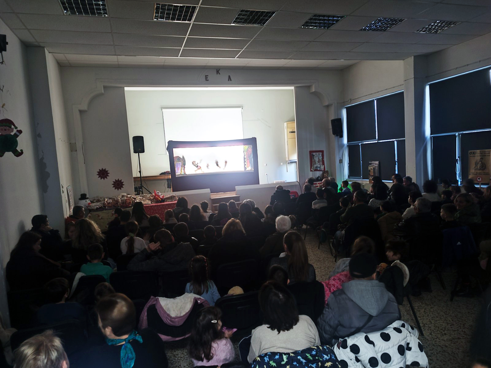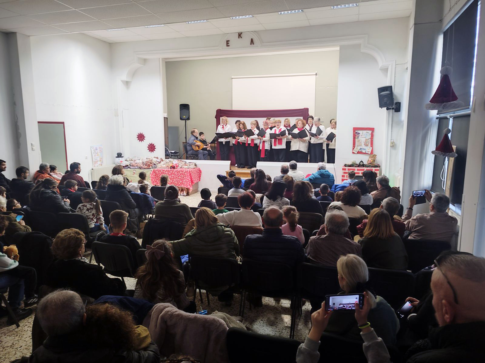 Μικροί και μεγάλοι είχαν την ευκαιρία να απολαύσουν την παράσταση «Ο Καραγκιόζης βοηθός του Αϊ Βασίλη» από το Θέατρο Σκιών του Νίκου Γκουντούρα ενώ στην συνέχεια η χορωδία του Σωματείου Συνταξιούχων με μαέστρο τον Γιώργο Δεληγιάννη και τον μικρό μαθητή Χρήστο Καλφούτζο στο κλαρίνο μας ταξίδεψαν με κάλαντα από όλη την Ελλάδα. Στην ανοιχτή πρόβα για την προετοιμασία της χορωδίας συνέβαλαν συνάδελφοι από τον Πανελλήνιο Μουσικό Σύλλογο καθώς και  μαθητές μουσικής!