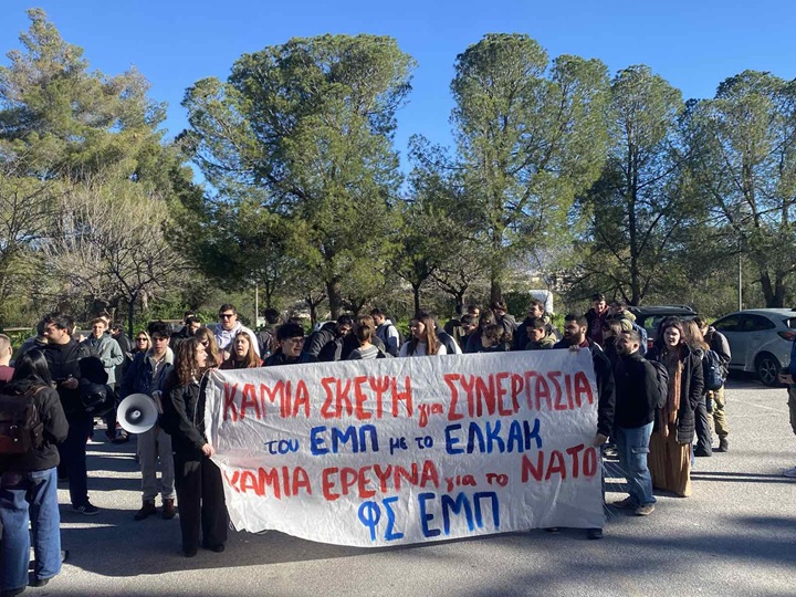 Μαχητική κινητοποίηση ενάντια στη κρυφή συνάντηση του ΕΛΚΑΚ (ελληνικό κέντρο αμυντικής καινοτομίας) με εκπροσώπους ερευνητικών ομάδων του Πολυτεχνείου πραγματοποίησαν σήμερα οι Φοιτητικοί Σύλλογοι του ΕΜΠ έχοντας στο πλευρό τους τους Συλλόγους μεταπτυχιακών φοιτητών και υποψηφίων διδακτόρων και τους εργαζόμενους του Ιδρύματος.