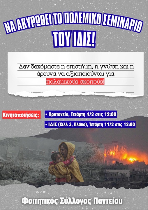 ΝΑ ΑΚΥΡΩΘΕΙ ΤΟ ΠΟΛΕΜΙΚΟ ΣΕΜΙΝΑΡΙΟ ΤΟΥ ΙΔΙΣ!