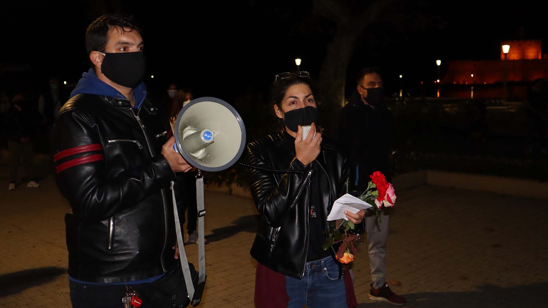 Η συγκέντρωση ξεκίνησε με την ανάγνωση δήλωσης του Δημήτρη Καραμήτα, εξορισμένου στη Λέρο κατά τη διάρκεια της Χούντας.