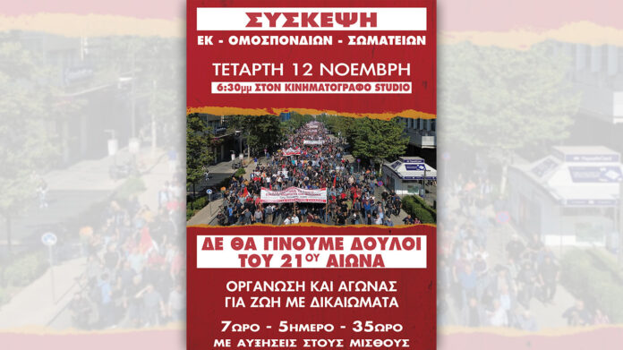 ΚΑΛΕΣΜΑ ΣΕ ΣΥΣΚΕΨΗ ΟΜΟΣΠΟΝΔΙΩΝ, ΕΡΓΑΤΙΚΩΝ ΚΕΝΤΡΩΝ ΚΑΙ ΣΩΜΑΤΕΙΩΝ ΤΗΣ ΑΤΤΙΚΗΣ