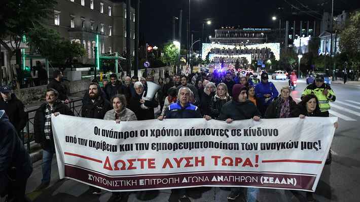 Σε κινητοποίηση στο Σύνταγμα προχώρησαν χθες, 3 Δεκέμβρη, Παγκόσμια Ημέρα ΑμεΑ,  ανάπηροι και χρόνιοι πάσχοντες, σωματεία και φορείς μετά από κάλεσμα της Συντονιστικής Επιτροπής Αγώνα Αναπήρων (ΣΕΑΑΝ).
