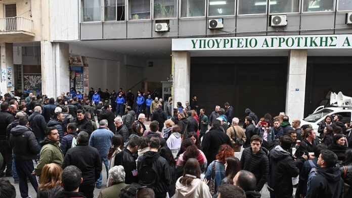 Κινητοποίηση στο υπ.Αγροτικής Ανάπτυξης πραγματοποίησαν σήμερα Συνδικάτα και Ομοσπονδίες εκφράζοντας την αλληλεγγύη και στήριξη τους στο δίκαιο αγώνα των αγροτών.