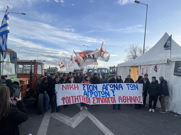 Την Κυριακή 4 Γενάρη, δεκάδες φοιτητές από τα Πανεπιστήμια της Αθήνας, με απόφαση των Φοιτητικών τους Συλλόγων, βρέθηκαν στο μπλόκο της Νίκαιας για να δείξουν έμπρακτα την αλληλεγγύη τους στους αγωνιζόμενους αγρότες, που για πάνω από έναν μήνα βρίσκονται στα μπλόκα για την επιβίωση τους!