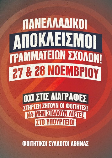 27-28 Νοέμβρη – Αποκλεισμοί Γραμματειών σε όλη τη χώρα!