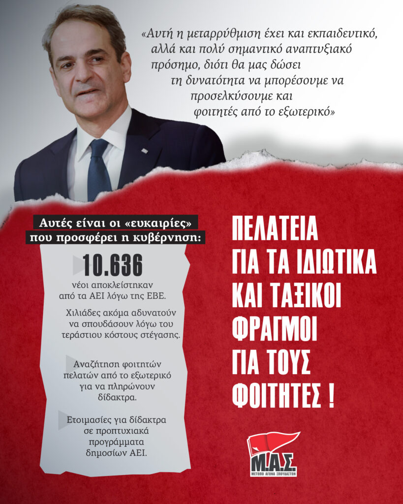 Αυτές είναι οι «ευκαιρίες» που τάχα προσφέρουν: εγχώρια και εισαγόμενη πελατεία για τα ιδιωτικά και ταξικοί φραγμοί και τεράστιο κόστος σπουδών για τους φοιτητές και τις φοιτήτριες!