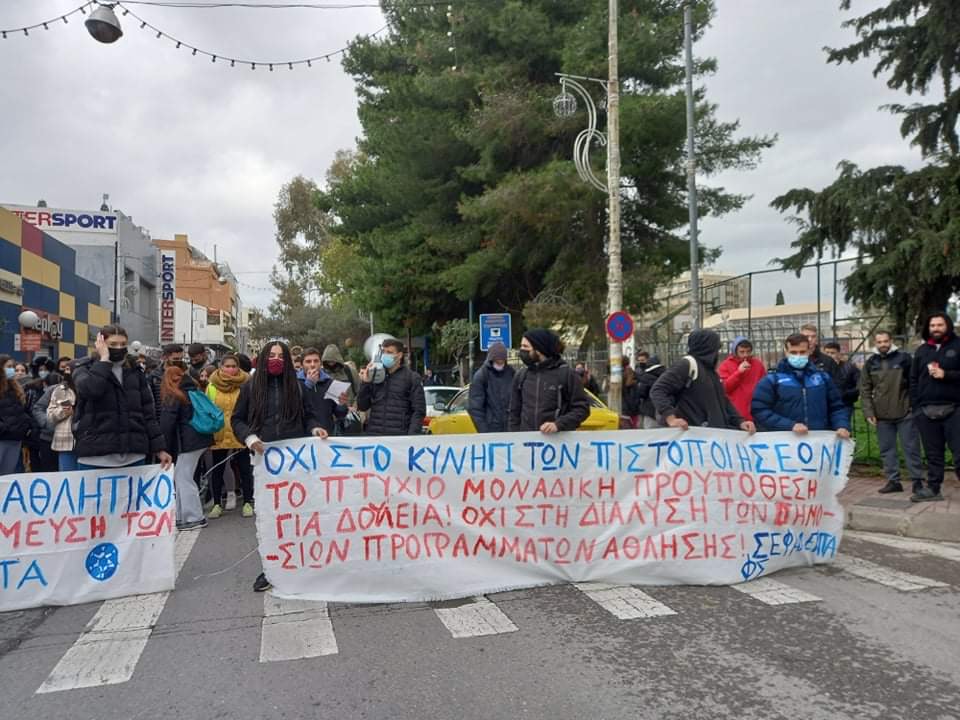 Την Τετάρτη 1/12 πραγματοποιήθηκε πανελλαδικός συντονισμός των ΤΕΦΑΑ στο οποίο συμμετείχαν οι Φ.Σ. των ΤΕΦΑΑ Θεσσαλονίκης και Τρικάλων και φοιτητές από τα ΤΕΦΑΑ Αθηνών μπροστά στο νέο αντί-αθλητικό νομοσχέδιο της κυβέρνησης, το οποίο δίνει συντριπτικό χτύπημα στην αξία των πτυχίων των ΣΕΦΑΑ, στα επαγγελματικά δικαιώματα των αποφοίτων και θέτει σε κίνδυνο τη δημόσια υγεία!