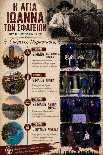 Σε Ημαθία- Αλιβέρι –Λευκάδα το θέατρο από «Εργάτες για Εργάτες» με την παράσταση «Η Αγία Ιωάννα των Σφαγείων»