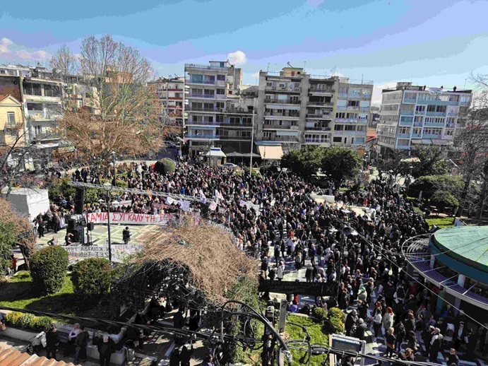 Η μαζική και δυναμική πορεία που ακολούθησε και πέρασε από τον σιδηροδρομικό σταθμό, γέμισε τους δρόμους της πόλης με συνθήματα που αποτύπωναν το μήνυμα ότι ο εργαζόμενος λαός και η νεολαία δεν ξεχνά, δε συγχωρεί το έγκλημα στα Τέμπη.