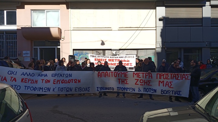 Στις 10 το πρωί πραγματοποιήθηκε συγκέντρωση στη Χαλκίδα έξω από το Τμήμα Επιθεώρησης Ασφάλειας και Υγείας στην Εργασία Εύβοιας. Αντιπροσωπεία από τα Συνδικάτα Τροφίμων και Ποτών Εύβοιας και Βοιωτίας μαζί με τους προέδρους των Εργατικών Κέντρων Εύβοιας και Θήβας συναντήθηκε με την Υπηρεσία και συζήτησε για την κατάσταση που επικρατεί και τις τεράστιες ελλείψεις σε προσωπικό.